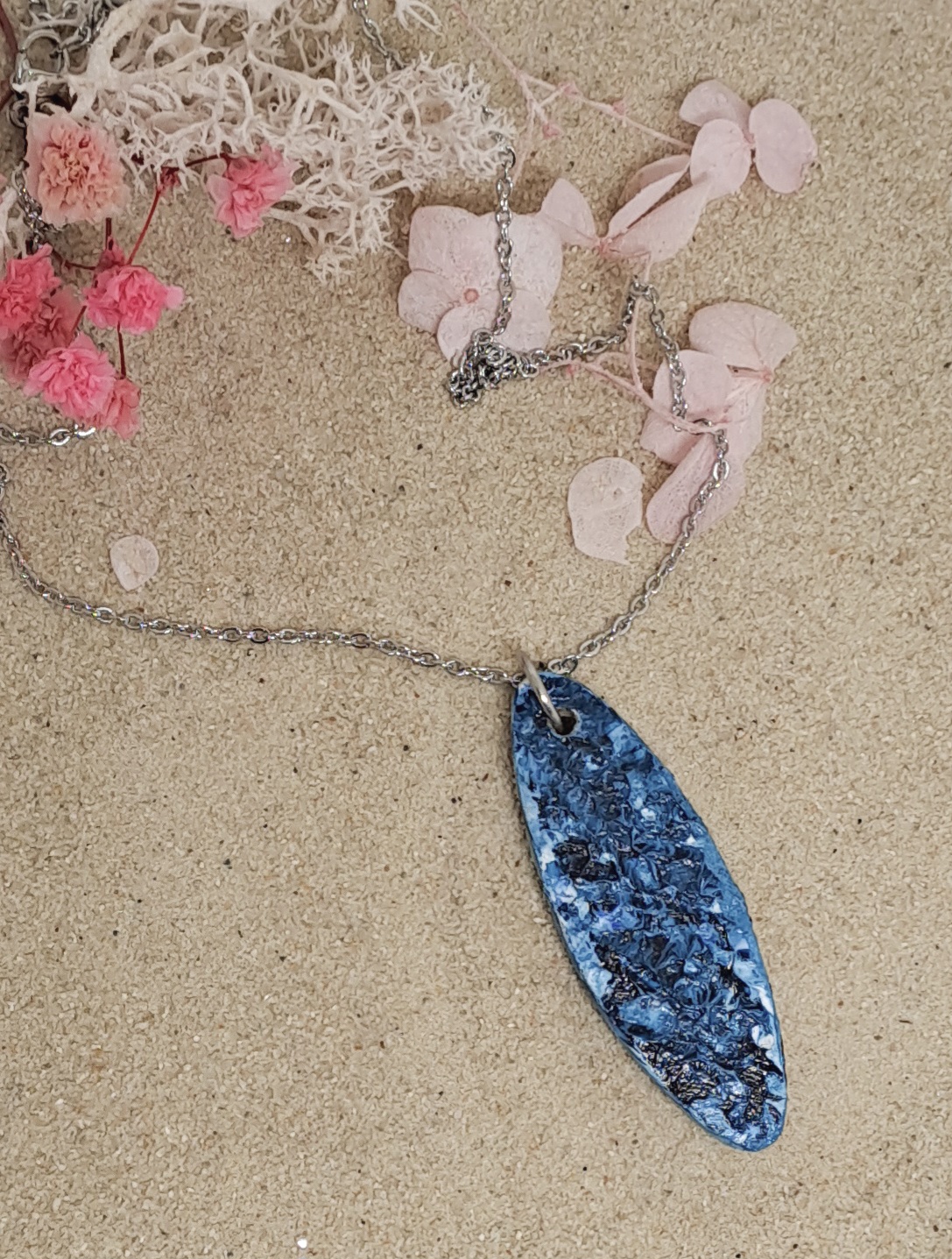 Pendentif en bois peint à la main à l’acrylique et vernis protecteur