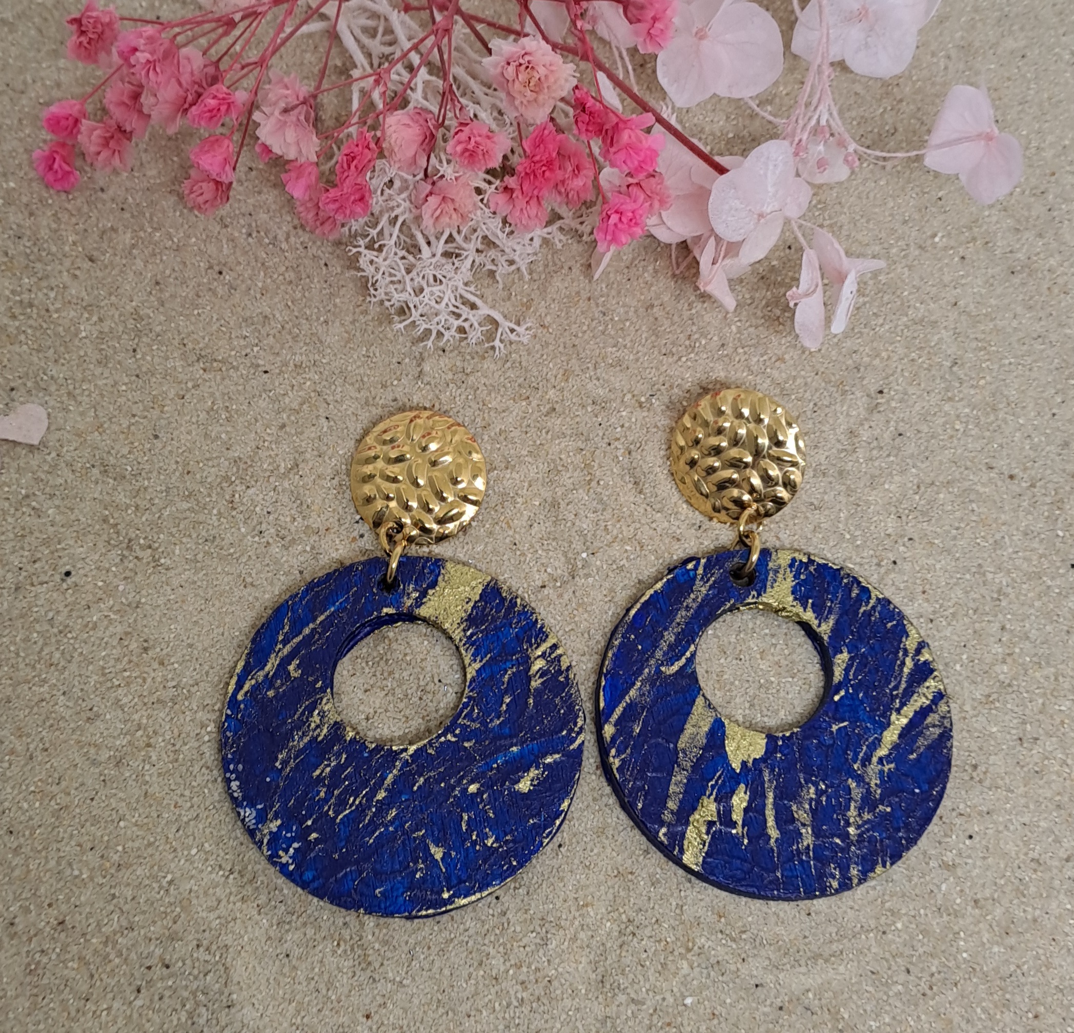 Boucles d’oreilles en bois peintes à la main et vernies
