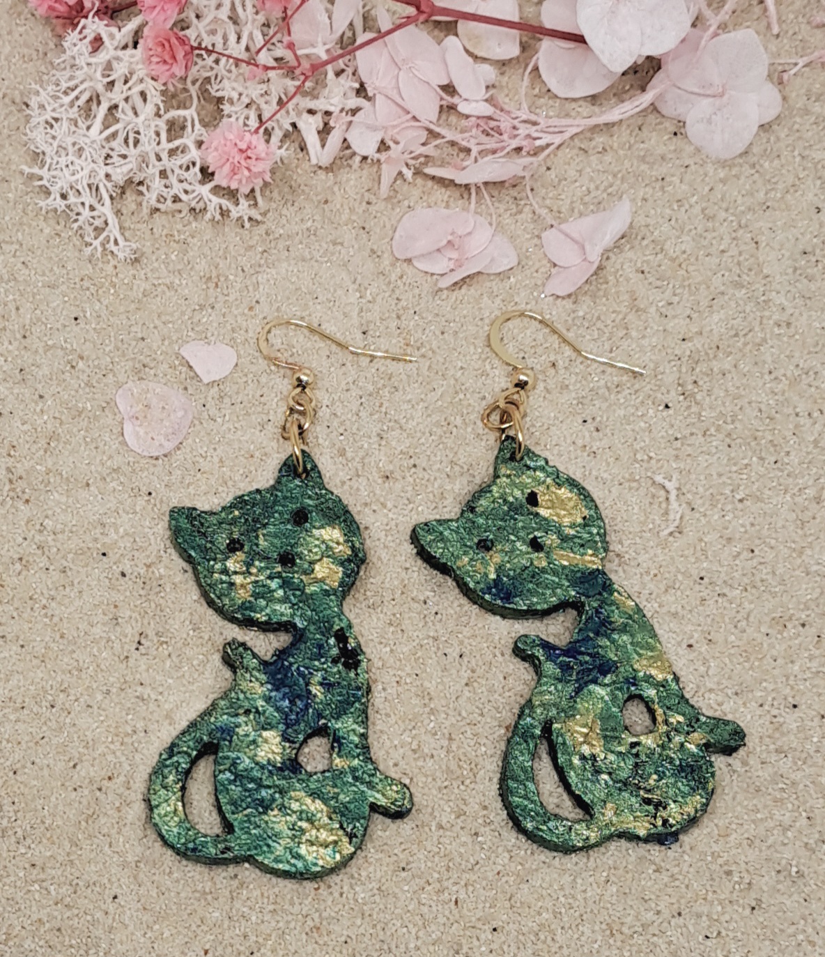Boucles d’oreilles en bois peintes à la main et vernies