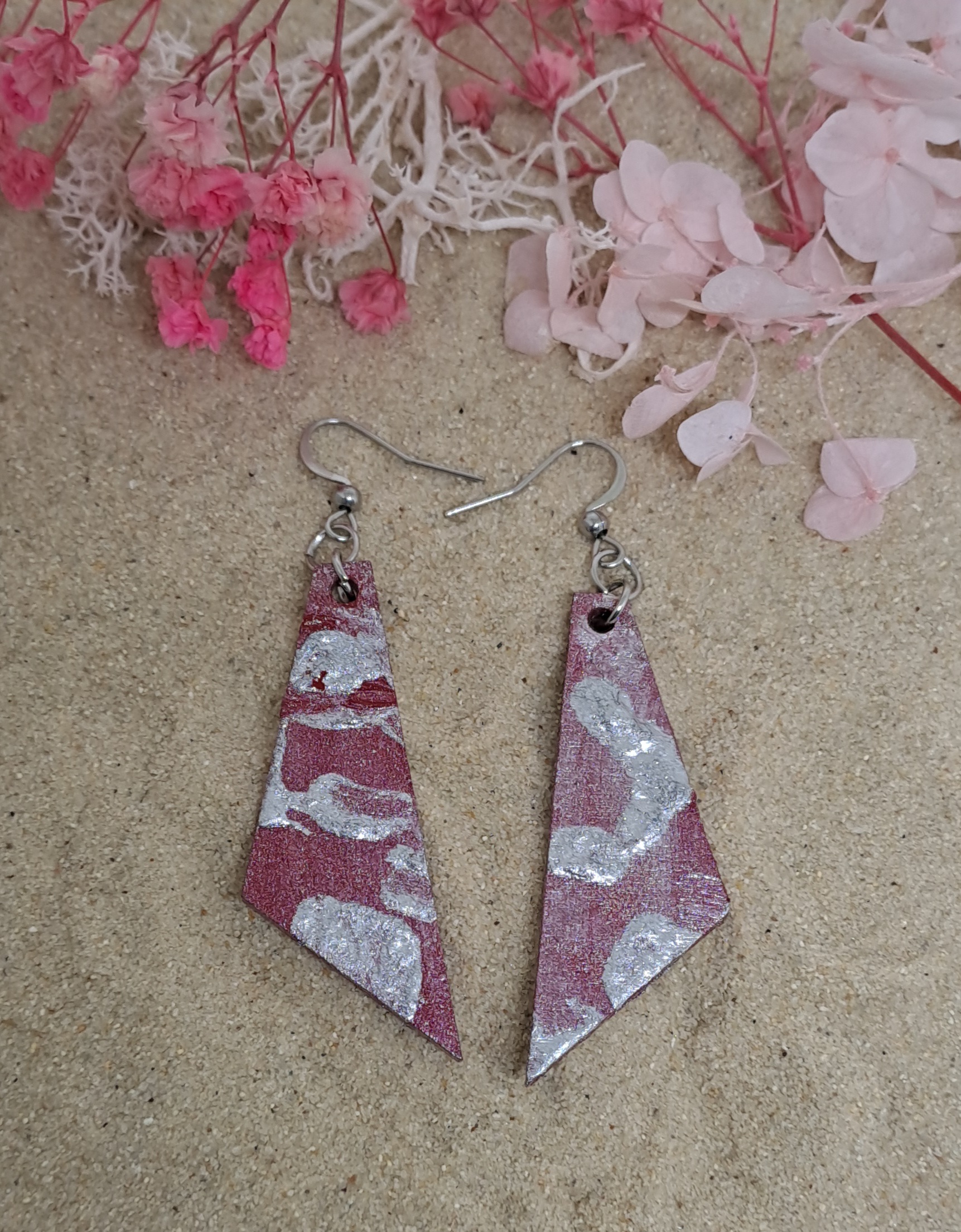 Boucles d’oreilles en bois peintes à la main et vernies